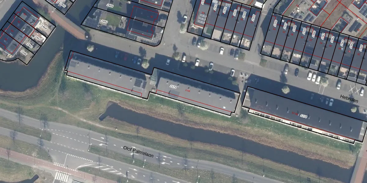 Het perceel waarop Hebriden 55 staat heeft een oppervlakte van 1277 m². Dit is een zeer groot perceel. De perceeloppervlakte wordt geregistreerd door het Kadaster. Gedetailleerde informatie over de maten van dit perceel kunt u vinden in het rapport Kadastrale kaart met maatvoering van Hebriden 55.