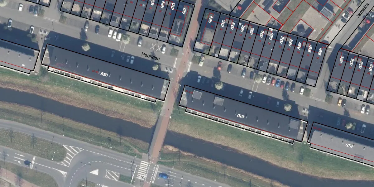 Het perceel waarop Hebriden 97 staat heeft een oppervlakte van 902 m². Dit is een groot perceel. De perceeloppervlakte wordt geregistreerd door het Kadaster. Gedetailleerde informatie over de maten van dit perceel kunt u vinden in het rapport Kadastrale kaart met maatvoering van Hebriden 97.
