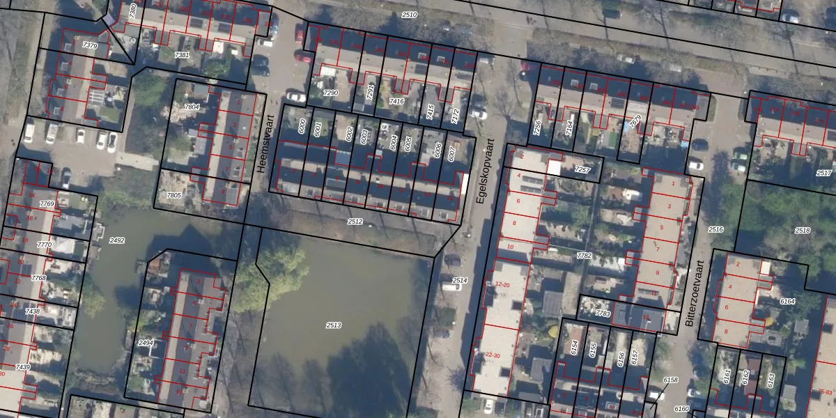 Gebruik de zoekbalk of klik op een perceel voor informatie over de adressen binnen dit perceel.