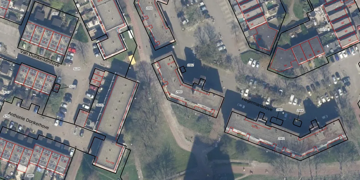 Het perceel waarop Heijermanshove 101 staat heeft een oppervlakte van 568 m². Dit is een groot perceel. De perceeloppervlakte wordt geregistreerd door het Kadaster. Gedetailleerde informatie over de maten van dit perceel kunt u vinden in het rapport Kadastrale kaart met maatvoering van Heijermanshove 101.