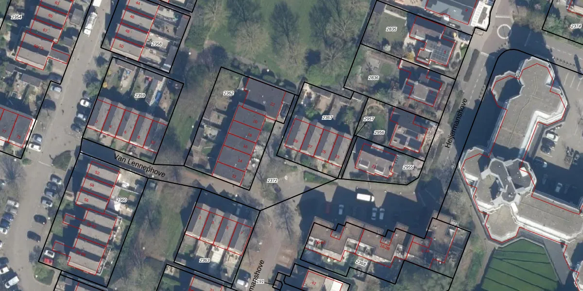Het perceel waarop Heijermanshove 29 staat heeft een oppervlakte van 621 m². Dit is een groot perceel. De perceeloppervlakte wordt geregistreerd door het Kadaster. Gedetailleerde informatie over de maten van dit perceel kunt u vinden in het rapport Kadastrale kaart met maatvoering van Heijermanshove 29.