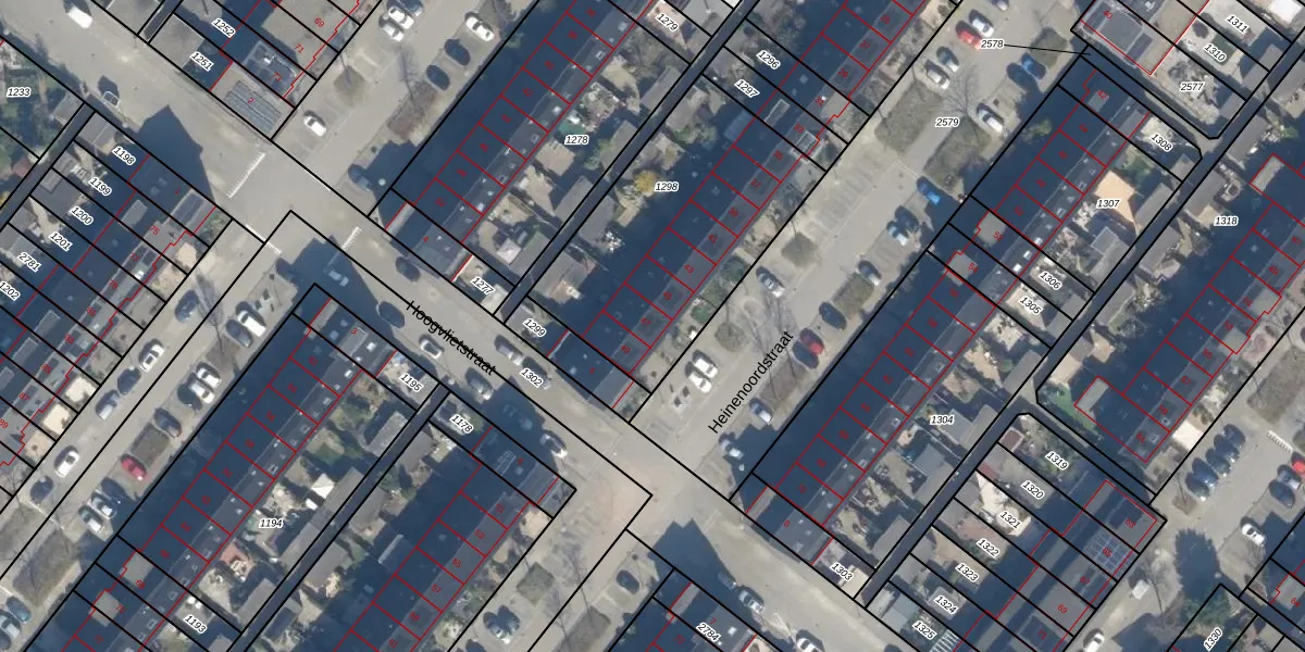Het perceel waarop Heinenoordstraat 47 staat heeft een oppervlakte van 1060 m². Dit is een zeer groot perceel. De perceeloppervlakte wordt geregistreerd door het Kadaster. Gedetailleerde informatie over de maten van dit perceel kunt u vinden in het rapport Kadastrale kaart met maatvoering van Heinenoordstraat 47.