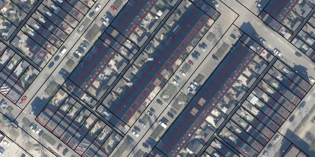 Het perceel waarop Heinenoordstraat 69 staat heeft een oppervlakte van 2112 m². Dit is een zeer groot perceel. De perceeloppervlakte wordt geregistreerd door het Kadaster. Gedetailleerde informatie over de maten van dit perceel kunt u vinden in het rapport Kadastrale kaart met maatvoering van Heinenoordstraat 69.