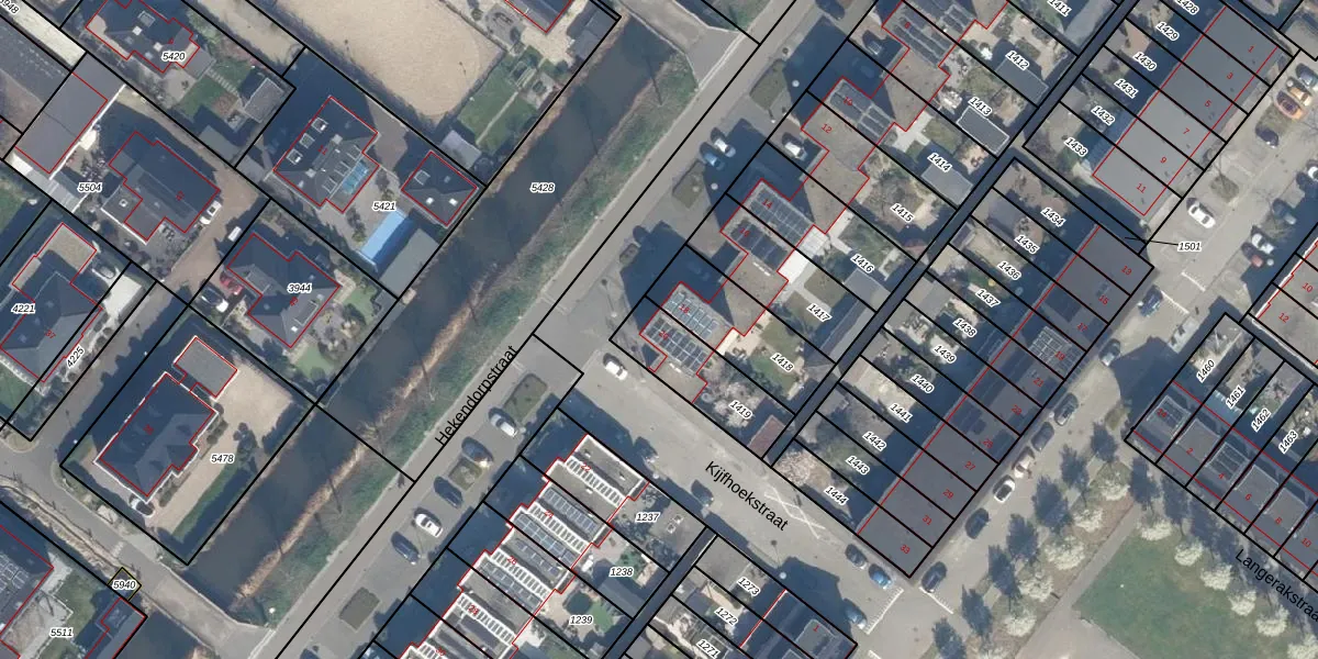 Gebruik de zoekbalk of klik op een perceel voor informatie over de adressen binnen dit perceel.