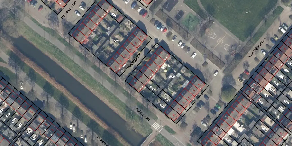 Het perceel waarop Herfstbruin 27 staat heeft een oppervlakte van 1024 m². Dit is een zeer groot perceel. De perceeloppervlakte wordt geregistreerd door het Kadaster. Gedetailleerde informatie over de maten van dit perceel kunt u vinden in het rapport Kadastrale kaart met maatvoering van Herfstbruin 27.