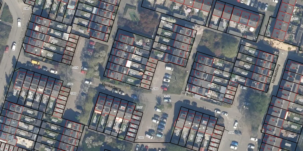 Het perceel waarop Herikerberg 46 staat heeft een oppervlakte van 18 m². Dit is een klein perceel. De perceeloppervlakte wordt geregistreerd door het Kadaster. Gedetailleerde informatie over de maten van dit perceel kunt u vinden in het rapport Kadastrale kaart met maatvoering van Herikerberg 46.