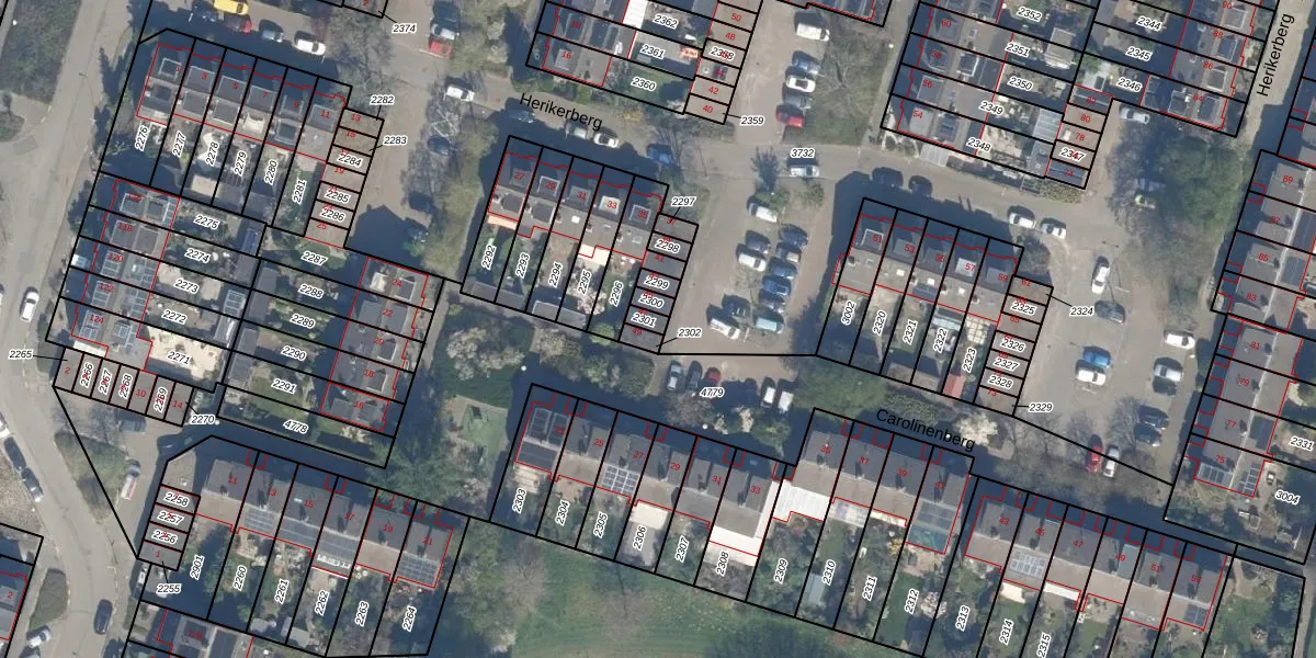 Het perceel waarop Herikerberg 47 staat heeft een oppervlakte van 18 m². Dit is een klein perceel. De perceeloppervlakte wordt geregistreerd door het Kadaster. Gedetailleerde informatie over de maten van dit perceel kunt u vinden in het rapport Kadastrale kaart met maatvoering van Herikerberg 47.