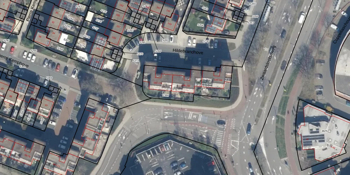 Hildebrandhove 152 is gelegen op kadastraal perceel ZTM00C2384. Deze kadastrale aanduiding is uniek en wordt gebruikt door het Kadaster om eigendomsrechten en andere zakelijke rechten vast te leggen. Het perceel maakt onderdeel uit van de kadastrale gemeente Zoetermeer.