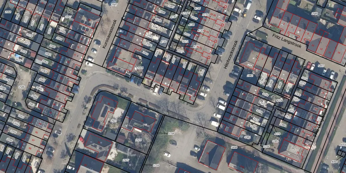 Gebruik de zoekbalk of klik op een perceel voor informatie over de adressen binnen dit perceel.