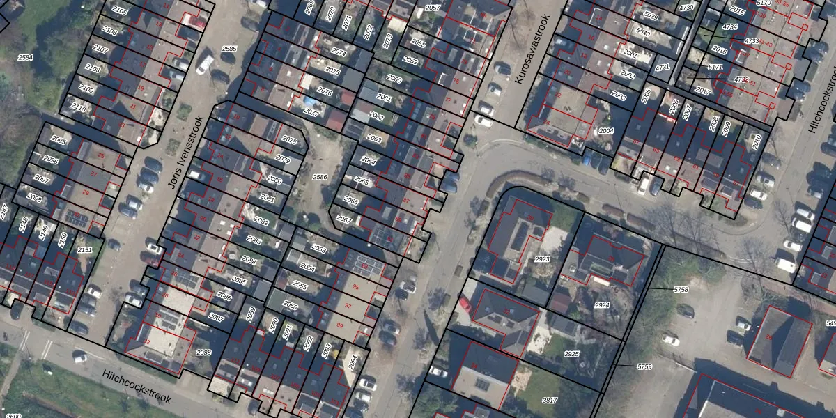 Gebruik de zoekbalk of klik op een perceel voor informatie over de adressen binnen dit perceel.
