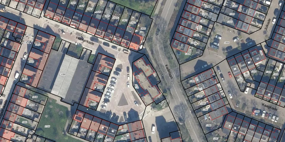 Het perceel waarop Hoekerkade 23 staat heeft een oppervlakte van 512 m². Dit is een groot perceel. De perceeloppervlakte wordt geregistreerd door het Kadaster. Gedetailleerde informatie over de maten van dit perceel kunt u vinden in het rapport Kadastrale kaart met maatvoering van Hoekerkade 23.