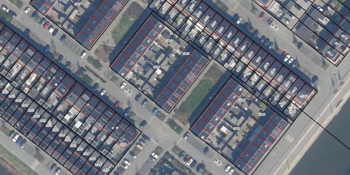 Het perceel waarop Hoornsemeer 62 staat heeft een oppervlakte van 1664 m². Dit is een zeer groot perceel. De perceeloppervlakte wordt geregistreerd door het Kadaster. Gedetailleerde informatie over de maten van dit perceel kunt u vinden in het rapport Kadastrale kaart met maatvoering van Hoornsemeer 62.
