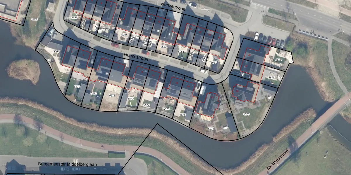 Het perceel waarop Hunzestroom 13 staat heeft een oppervlakte van 265 m². Dit is een middelgroot perceel. De perceeloppervlakte wordt geregistreerd door het Kadaster. Gedetailleerde informatie over de maten van dit perceel kunt u vinden in het rapport Kadastrale kaart met maatvoering van Hunzestroom 13.