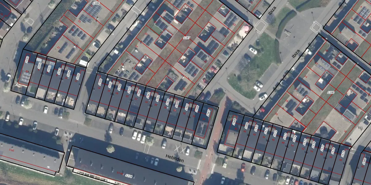 Het perceel waarop Ibiza 23 staat heeft een oppervlakte van 3163 m². Dit is een zeer groot perceel. De perceeloppervlakte wordt geregistreerd door het Kadaster. Gedetailleerde informatie over de maten van dit perceel kunt u vinden in het rapport Kadastrale kaart met maatvoering van Ibiza 23.