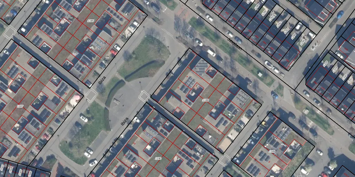 Het perceel waarop Ibiza 6 staat heeft een oppervlakte van 1837 m². Dit is een zeer groot perceel. De perceeloppervlakte wordt geregistreerd door het Kadaster. Gedetailleerde informatie over de maten van dit perceel kunt u vinden in het rapport Kadastrale kaart met maatvoering van Ibiza 6.