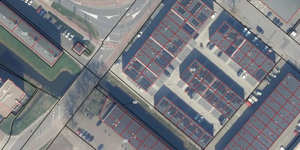 Het perceel waarop Industrieweg 1-12 staat heeft een oppervlakte van 6791 m². Dit is een zeer groot perceel. De perceeloppervlakte wordt geregistreerd door het Kadaster. Gedetailleerde informatie over de maten van dit perceel kunt u vinden in het rapport Kadastrale kaart met maatvoering van Industrieweg 1-12.