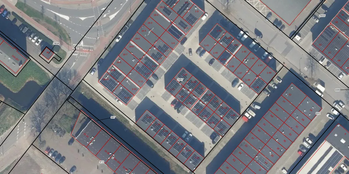 Het perceel waarop Industrieweg 1-27 staat heeft een oppervlakte van 6791 m². Dit is een zeer groot perceel. De perceeloppervlakte wordt geregistreerd door het Kadaster. Gedetailleerde informatie over de maten van dit perceel kunt u vinden in het rapport Kadastrale kaart met maatvoering van Industrieweg 1-27.