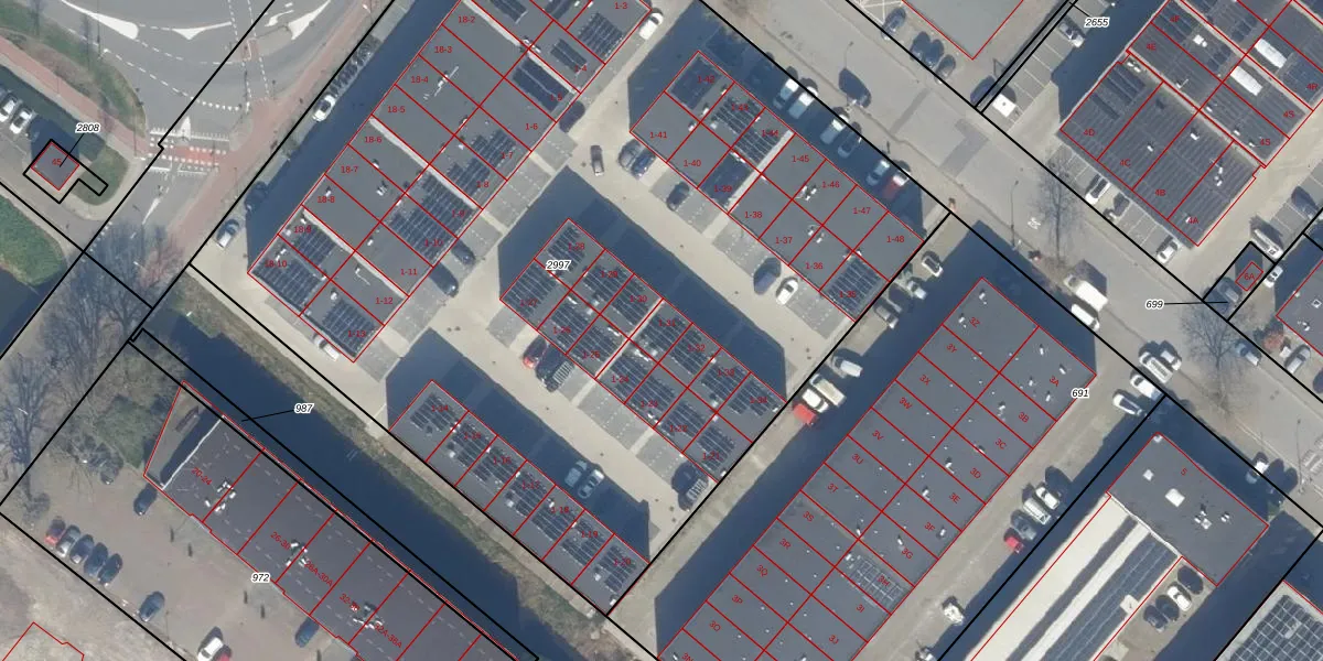 Het perceel waarop Industrieweg 1-31 staat heeft een oppervlakte van 6791 m². Dit is een zeer groot perceel. De perceeloppervlakte wordt geregistreerd door het Kadaster. Gedetailleerde informatie over de maten van dit perceel kunt u vinden in het rapport Kadastrale kaart met maatvoering van Industrieweg 1-31.