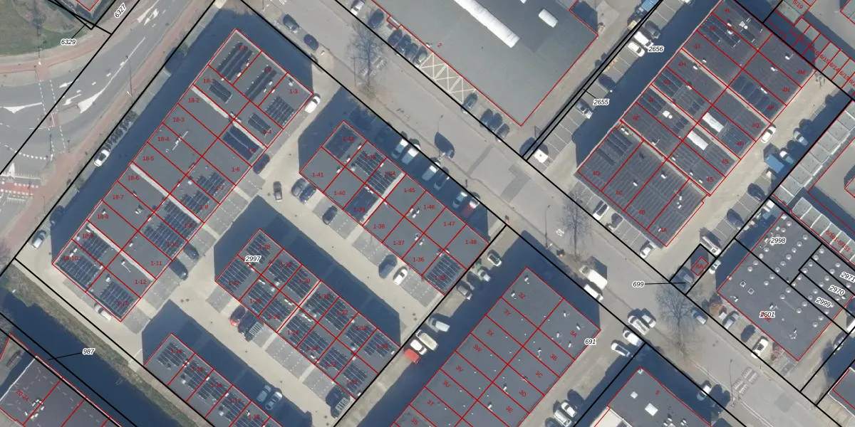 Het perceel waarop Industrieweg 1-46 staat heeft een oppervlakte van 6791 m². Dit is een zeer groot perceel. De perceeloppervlakte wordt geregistreerd door het Kadaster. Gedetailleerde informatie over de maten van dit perceel kunt u vinden in het rapport Kadastrale kaart met maatvoering van Industrieweg 1-46.