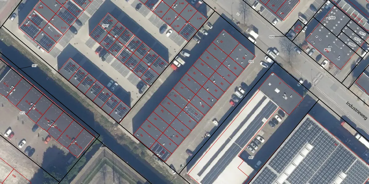 Het perceel waarop Industrieweg 3-T staat heeft een oppervlakte van 3418 m². Dit is een zeer groot perceel. De perceeloppervlakte wordt geregistreerd door het Kadaster. Gedetailleerde informatie over de maten van dit perceel kunt u vinden in het rapport Kadastrale kaart met maatvoering van Industrieweg 3-T.