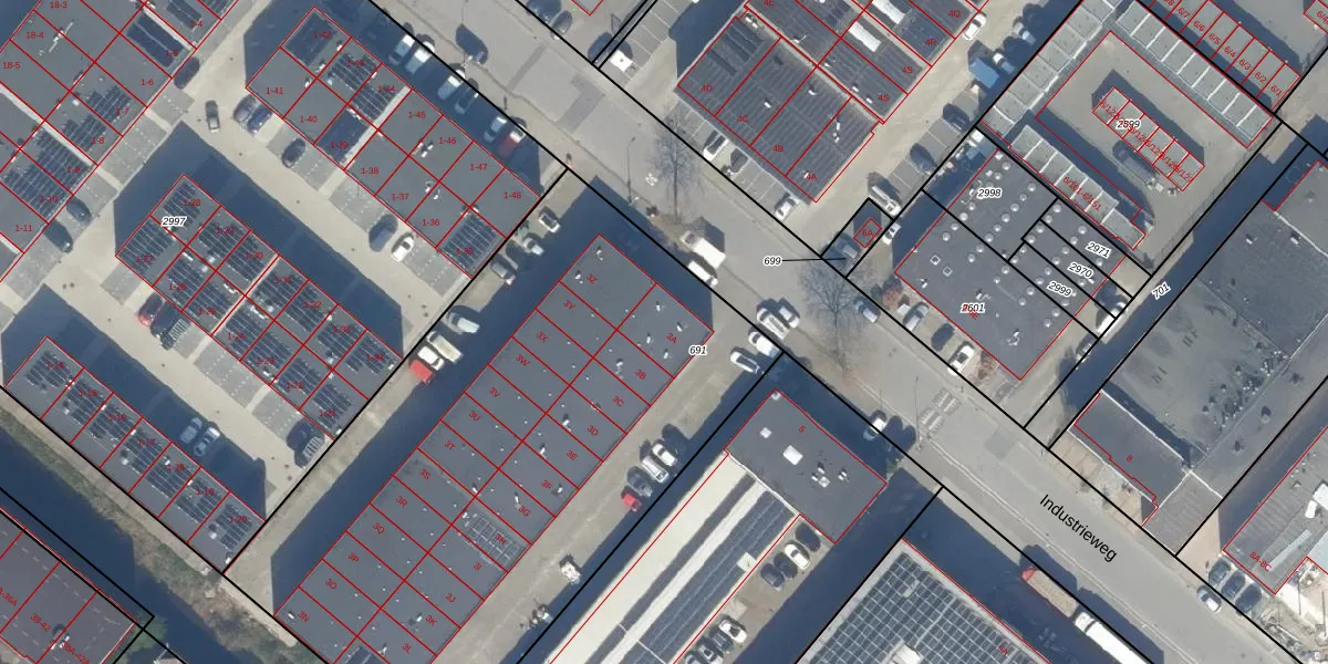 Het perceel waarop Industrieweg 3-A staat heeft een oppervlakte van 3418 m². Dit is een zeer groot perceel. De perceeloppervlakte wordt geregistreerd door het Kadaster. Gedetailleerde informatie over de maten van dit perceel kunt u vinden in het rapport Kadastrale kaart met maatvoering van Industrieweg 3-A.