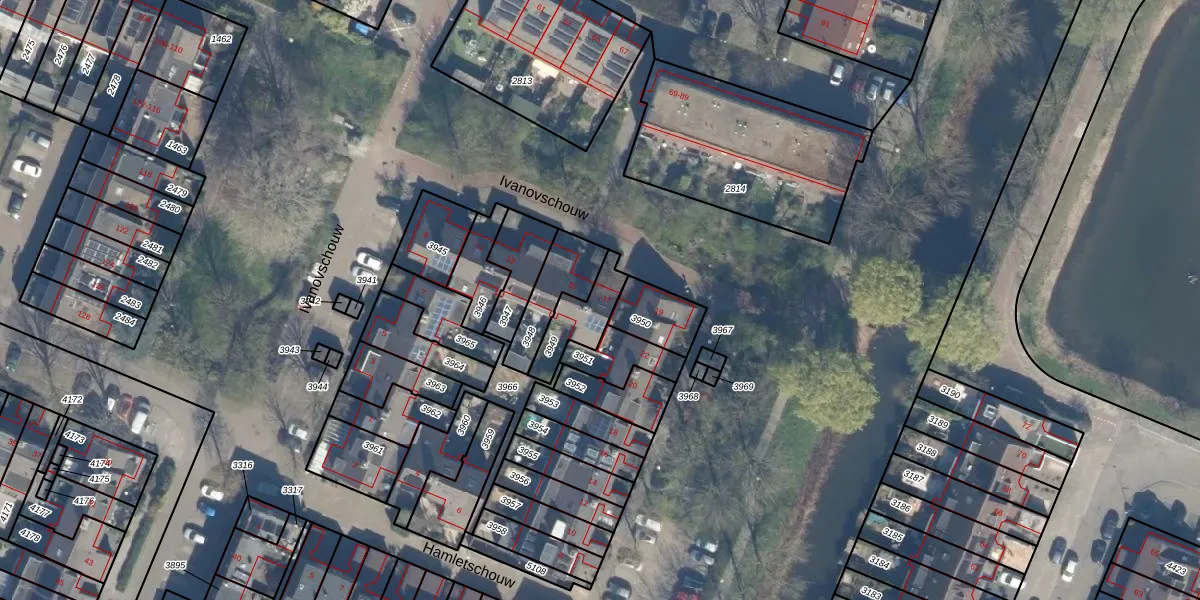 Gebruik de zoekbalk of klik op een perceel voor informatie over de adressen binnen dit perceel.