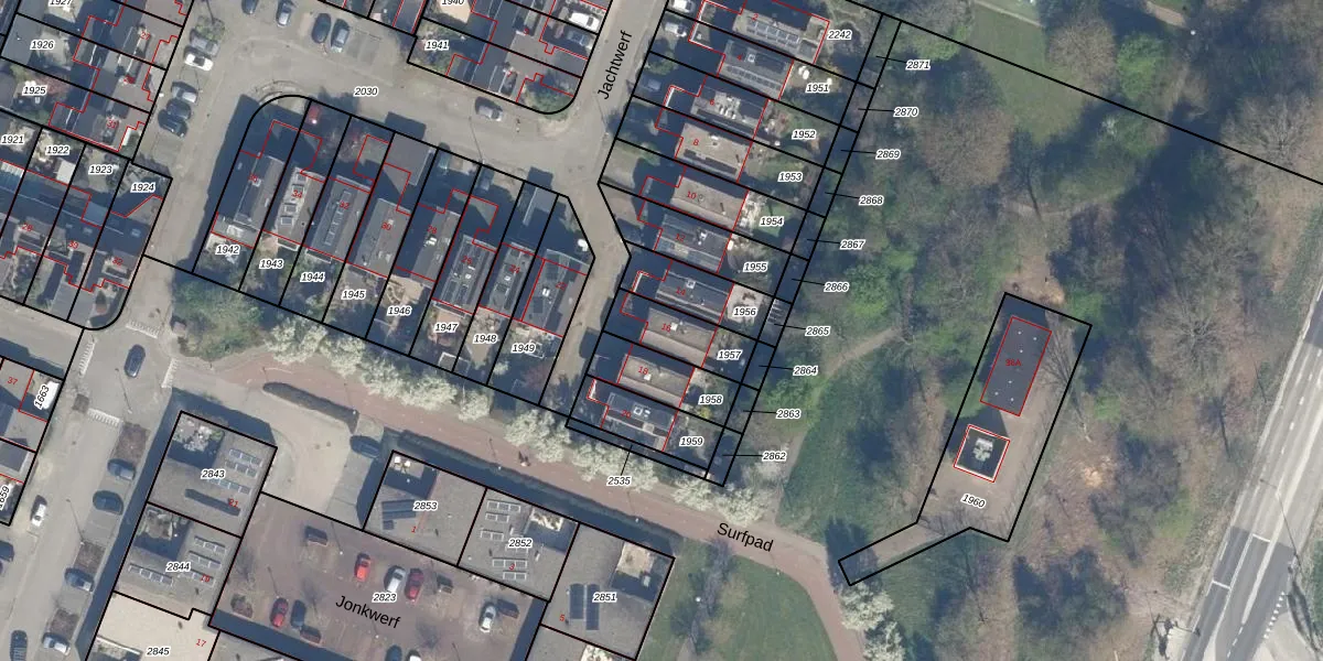 Gebruik de zoekbalk of klik op een perceel voor informatie over de adressen binnen dit perceel.