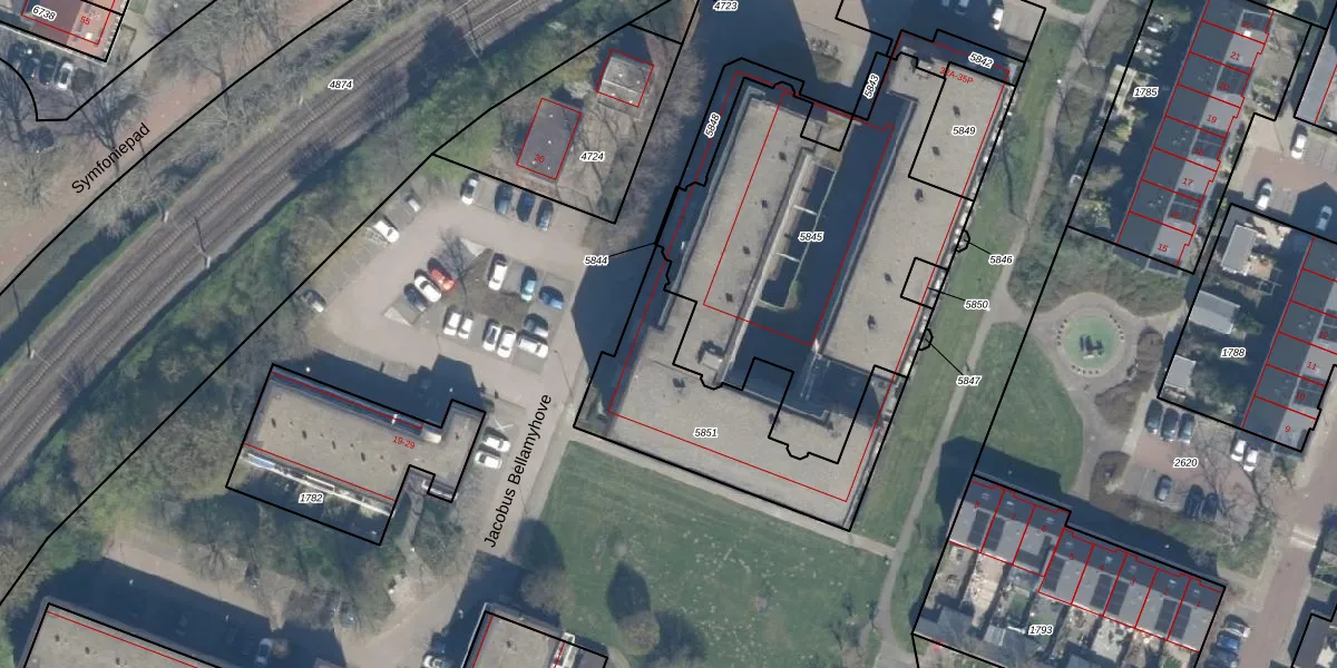 Het perceel waarop Jacobus Bellamyhove 33-G staat heeft een oppervlakte van 742 m². Dit is een groot perceel. De perceeloppervlakte wordt geregistreerd door het Kadaster. Gedetailleerde informatie over de maten van dit perceel kunt u vinden in het rapport Kadastrale kaart met maatvoering van Jacobus Bellamyhove 33-G.
