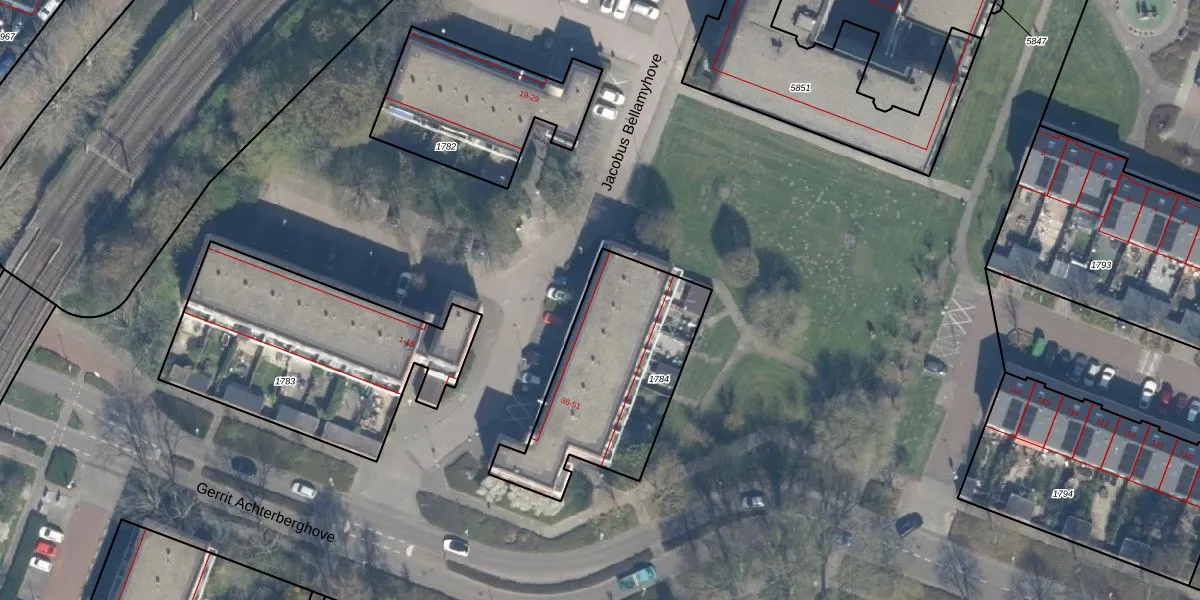 Het perceel waarop Jacobus Bellamyhove 37 staat heeft een oppervlakte van 752 m². Dit is een groot perceel. De perceeloppervlakte wordt geregistreerd door het Kadaster. Gedetailleerde informatie over de maten van dit perceel kunt u vinden in het rapport Kadastrale kaart met maatvoering van Jacobus Bellamyhove 37.