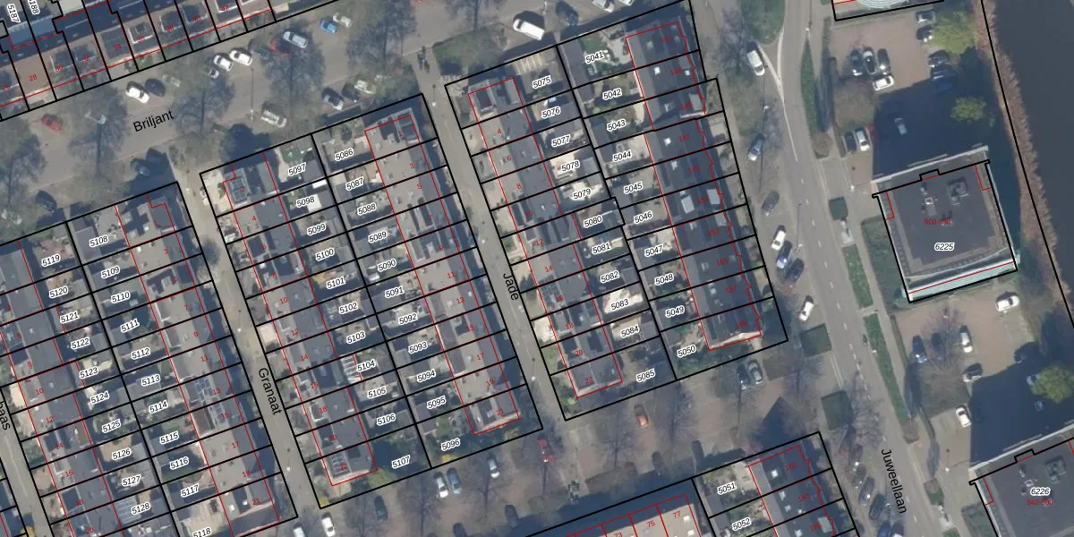 Het perceel waarop Jade 14 staat heeft een oppervlakte van 120 m². Dit is een middelgroot perceel. De perceeloppervlakte wordt geregistreerd door het Kadaster. Gedetailleerde informatie over de maten van dit perceel kunt u vinden in het rapport Kadastrale kaart met maatvoering van Jade 14.