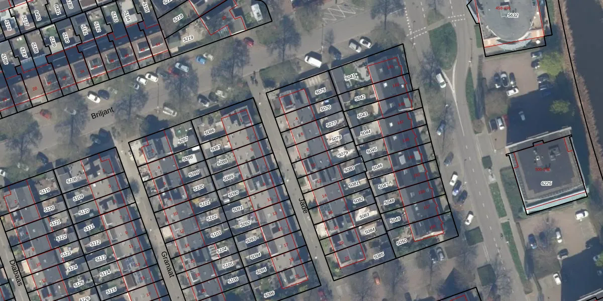 Het perceel waarop Jade 8 staat heeft een oppervlakte van 119 m². Dit is een middelgroot perceel. De perceeloppervlakte wordt geregistreerd door het Kadaster. Gedetailleerde informatie over de maten van dit perceel kunt u vinden in het rapport Kadastrale kaart met maatvoering van Jade 8.