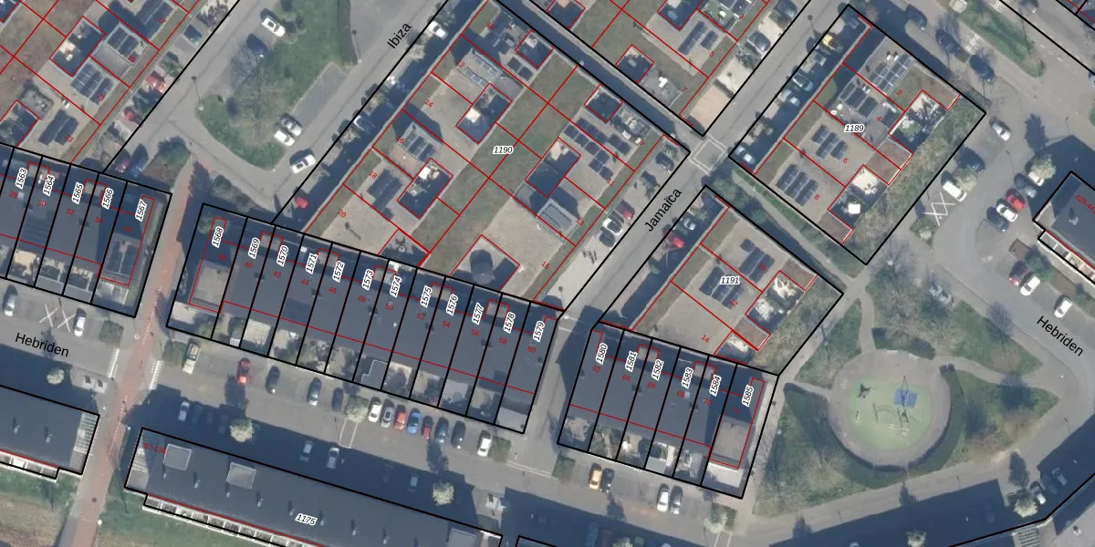 Het perceel waarop Jamaica 15 staat heeft een oppervlakte van 2464 m². Dit is een zeer groot perceel. De perceeloppervlakte wordt geregistreerd door het Kadaster. Gedetailleerde informatie over de maten van dit perceel kunt u vinden in het rapport Kadastrale kaart met maatvoering van Jamaica 15.