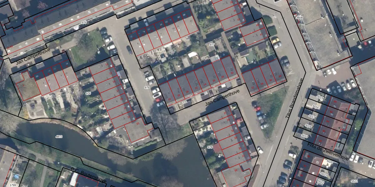 Het perceel waarop Jan Camperthove 20 staat heeft een oppervlakte van 3523 m². Dit is een zeer groot perceel. De perceeloppervlakte wordt geregistreerd door het Kadaster. Gedetailleerde informatie over de maten van dit perceel kunt u vinden in het rapport Kadastrale kaart met maatvoering van Jan Camperthove 20.