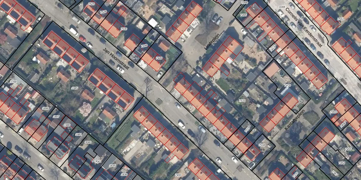 Het perceel waarop Jan Hoornstraat 78 staat heeft een oppervlakte van 9614 m². Dit is een zeer groot perceel. De perceeloppervlakte wordt geregistreerd door het Kadaster. Gedetailleerde informatie over de maten van dit perceel kunt u vinden in het rapport Kadastrale kaart met maatvoering van Jan Hoornstraat 78.