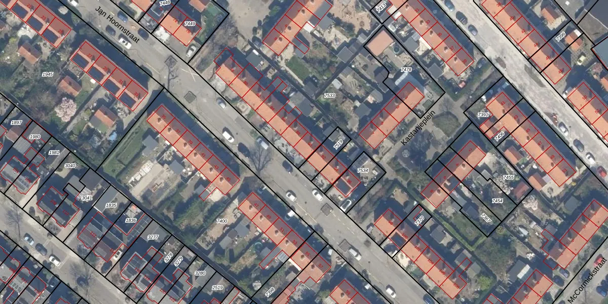 Het perceel waarop Jan Hoornstraat 90 staat heeft een oppervlakte van 9614 m². Dit is een zeer groot perceel. De perceeloppervlakte wordt geregistreerd door het Kadaster. Gedetailleerde informatie over de maten van dit perceel kunt u vinden in het rapport Kadastrale kaart met maatvoering van Jan Hoornstraat 90.