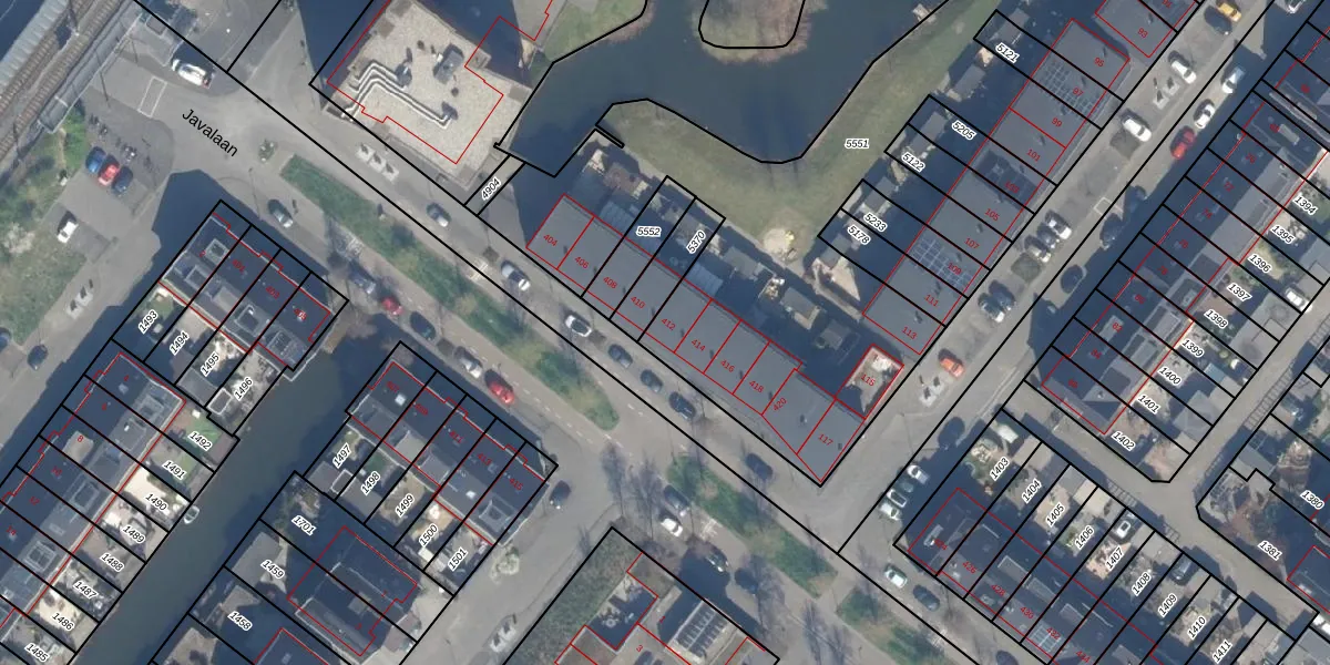 Javalaan 412 is gelegen op kadastraal perceel ZWD01F5551. Deze kadastrale aanduiding is uniek en wordt gebruikt door het Kadaster om eigendomsrechten en andere zakelijke rechten vast te leggen. Het perceel maakt onderdeel uit van de kadastrale gemeente Zegwaard.
