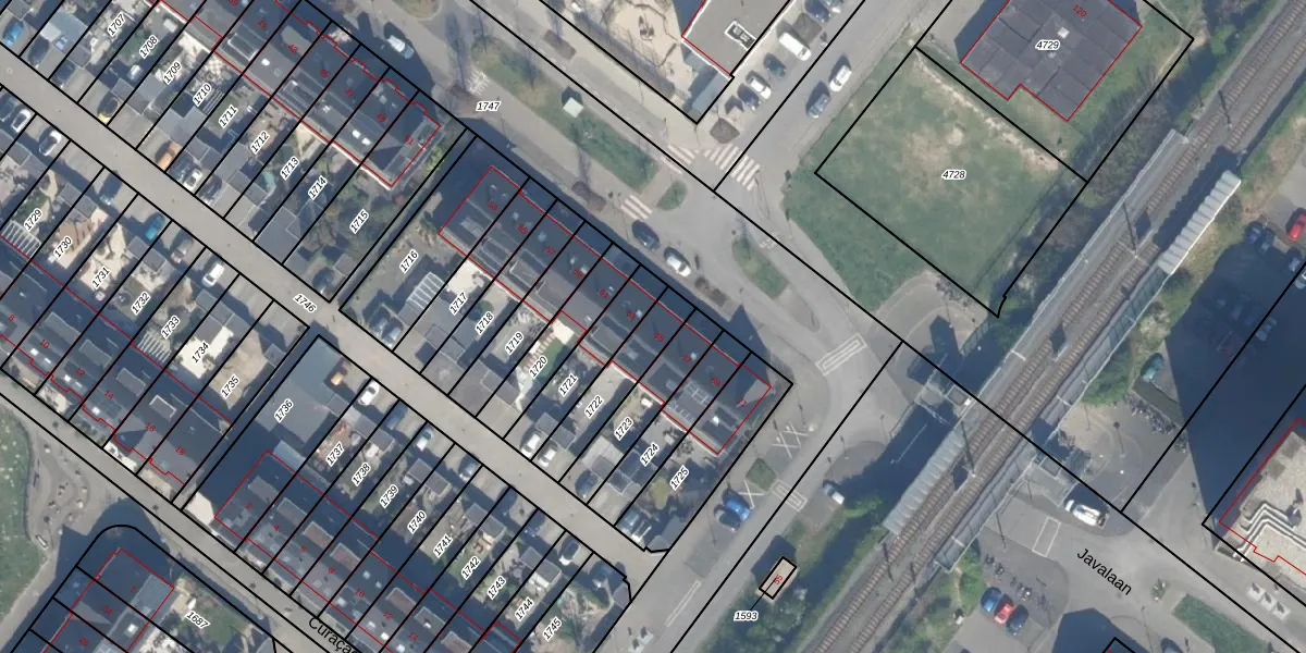Het perceel waarop Javalaan 65 staat heeft een oppervlakte van 185 m². Dit is een middelgroot perceel. De perceeloppervlakte wordt geregistreerd door het Kadaster. Gedetailleerde informatie over de maten van dit perceel kunt u vinden in het rapport Kadastrale kaart met maatvoering van Javalaan 65.