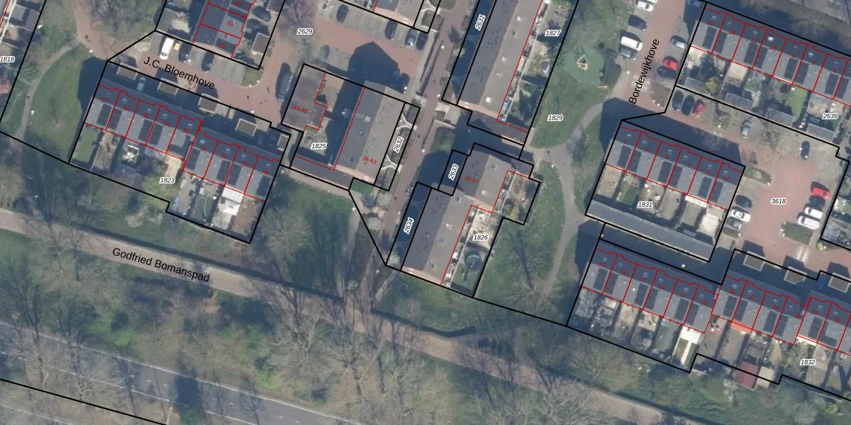 Het perceel waarop J.C. Bloemhove 30 staat heeft een oppervlakte van 615 m². Dit is een groot perceel. De perceeloppervlakte wordt geregistreerd door het Kadaster. Gedetailleerde informatie over de maten van dit perceel kunt u vinden in het rapport Kadastrale kaart met maatvoering van J.C. Bloemhove 30.