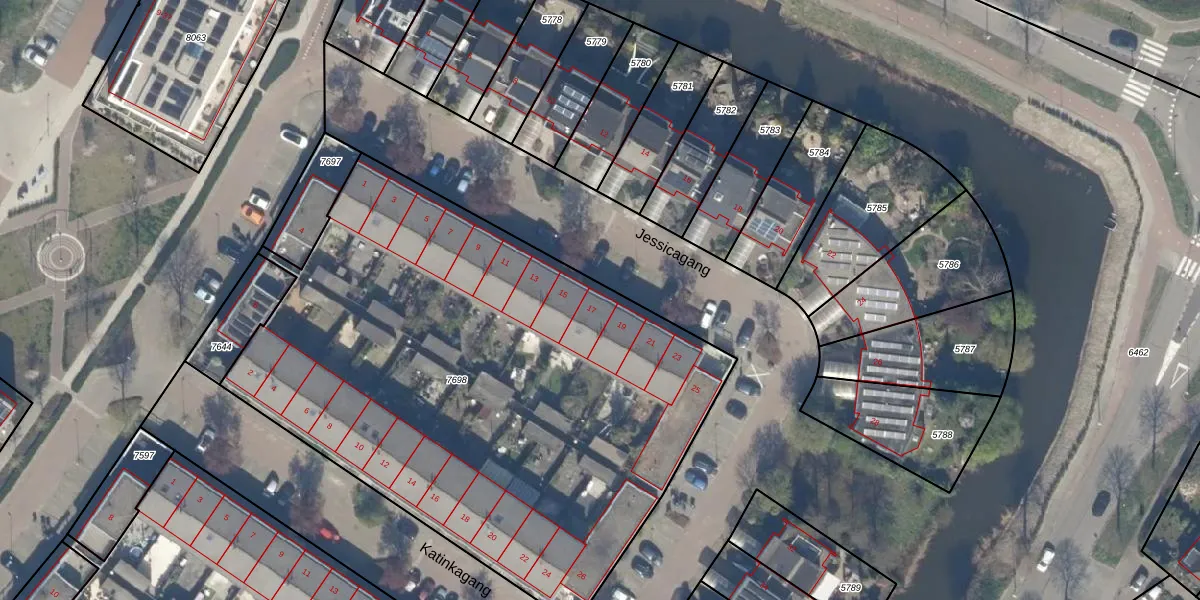 Het perceel waarop Jessicagang 17 staat heeft een oppervlakte van 3484 m². Dit is een zeer groot perceel. De perceeloppervlakte wordt geregistreerd door het Kadaster. Gedetailleerde informatie over de maten van dit perceel kunt u vinden in het rapport Kadastrale kaart met maatvoering van Jessicagang 17.