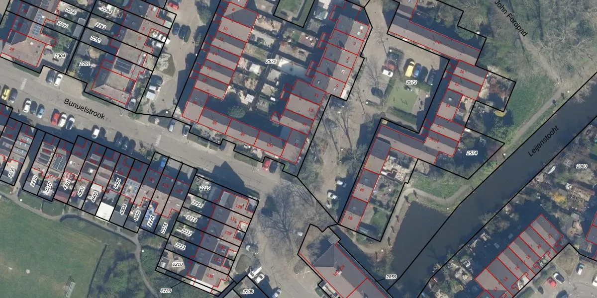 Het perceel waarop John Fordstrook 17 staat heeft een oppervlakte van 2855 m². Dit is een zeer groot perceel. De perceeloppervlakte wordt geregistreerd door het Kadaster. Gedetailleerde informatie over de maten van dit perceel kunt u vinden in het rapport Kadastrale kaart met maatvoering van John Fordstrook 17.