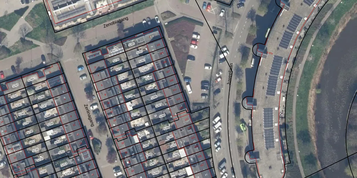 Juweellaan 111 is gelegen op kadastraal perceel ZWD01C5286. Deze kadastrale aanduiding is uniek en wordt gebruikt door het Kadaster om eigendomsrechten en andere zakelijke rechten vast te leggen. Het perceel maakt onderdeel uit van de kadastrale gemeente Zegwaard.