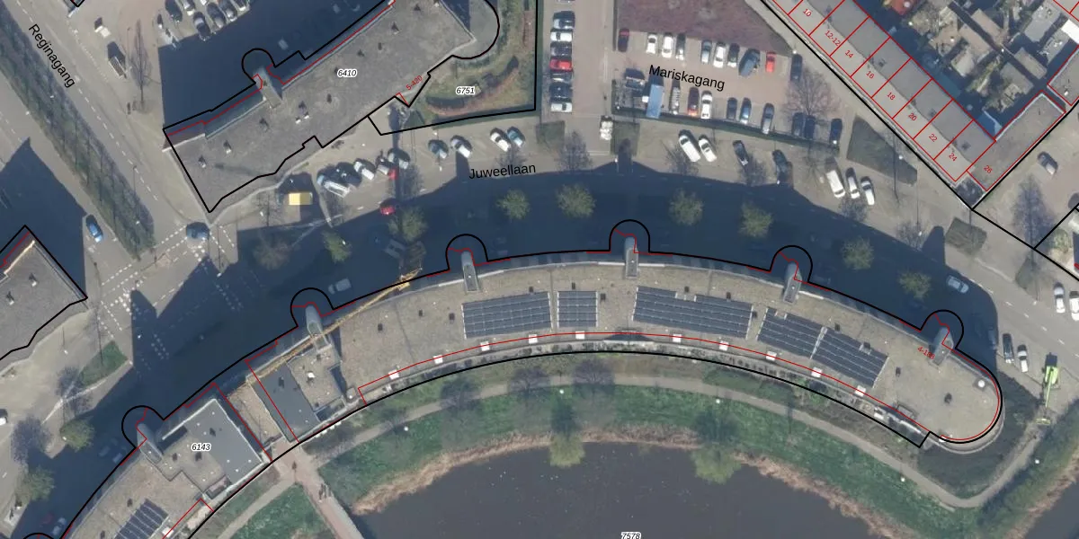 Juweellaan 114 is gelegen op kadastraal perceel ZWD01C6143. Deze kadastrale aanduiding is uniek en wordt gebruikt door het Kadaster om eigendomsrechten en andere zakelijke rechten vast te leggen. Het perceel maakt onderdeel uit van de kadastrale gemeente Zegwaard.