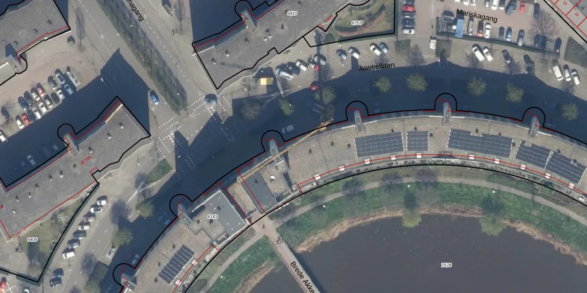 Juweellaan 154 is gelegen op kadastraal perceel ZWD01C6143. Deze kadastrale aanduiding is uniek en wordt gebruikt door het Kadaster om eigendomsrechten en andere zakelijke rechten vast te leggen. Het perceel maakt onderdeel uit van de kadastrale gemeente Zegwaard.