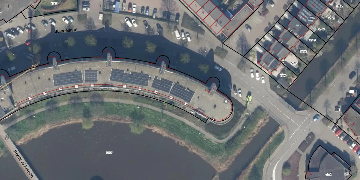 Het perceel waarop Juweellaan 20 staat heeft een oppervlakte van 5710 m². Dit is een zeer groot perceel. De perceeloppervlakte wordt geregistreerd door het Kadaster. Gedetailleerde informatie over de maten van dit perceel kunt u vinden in het rapport Kadastrale kaart met maatvoering van Juweellaan 20.