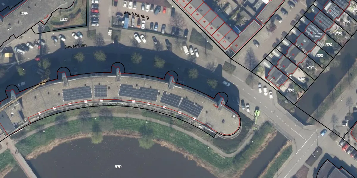 Het perceel waarop Juweellaan 46 staat heeft een oppervlakte van 5710 m². Dit is een zeer groot perceel. De perceeloppervlakte wordt geregistreerd door het Kadaster. Gedetailleerde informatie over de maten van dit perceel kunt u vinden in het rapport Kadastrale kaart met maatvoering van Juweellaan 46.
