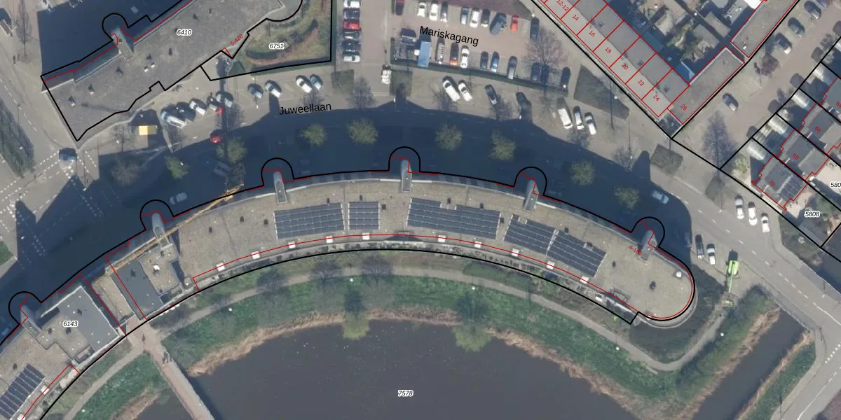 Het perceel waarop Juweellaan 52 staat heeft een oppervlakte van 5710 m². Dit is een zeer groot perceel. De perceeloppervlakte wordt geregistreerd door het Kadaster. Gedetailleerde informatie over de maten van dit perceel kunt u vinden in het rapport Kadastrale kaart met maatvoering van Juweellaan 52.