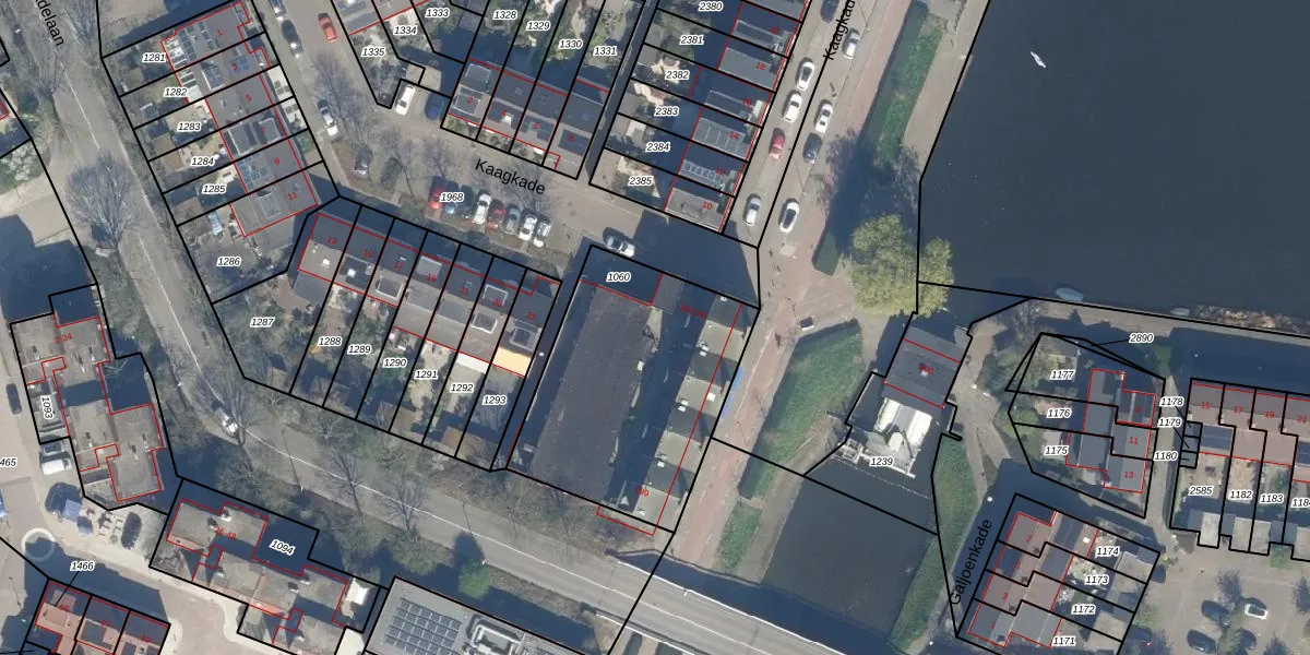 Het perceel waarop Kaagkade 43 staat heeft een oppervlakte van 1012 m². Dit is een zeer groot perceel. De perceeloppervlakte wordt geregistreerd door het Kadaster. Gedetailleerde informatie over de maten van dit perceel kunt u vinden in het rapport Kadastrale kaart met maatvoering van Kaagkade 43.
