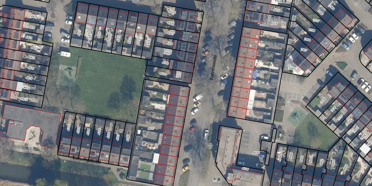 Het perceel waarop Kalverweide 51 staat heeft een oppervlakte van 1378 m². Dit is een zeer groot perceel. De perceeloppervlakte wordt geregistreerd door het Kadaster. Gedetailleerde informatie over de maten van dit perceel kunt u vinden in het rapport Kadastrale kaart met maatvoering van Kalverweide 51.