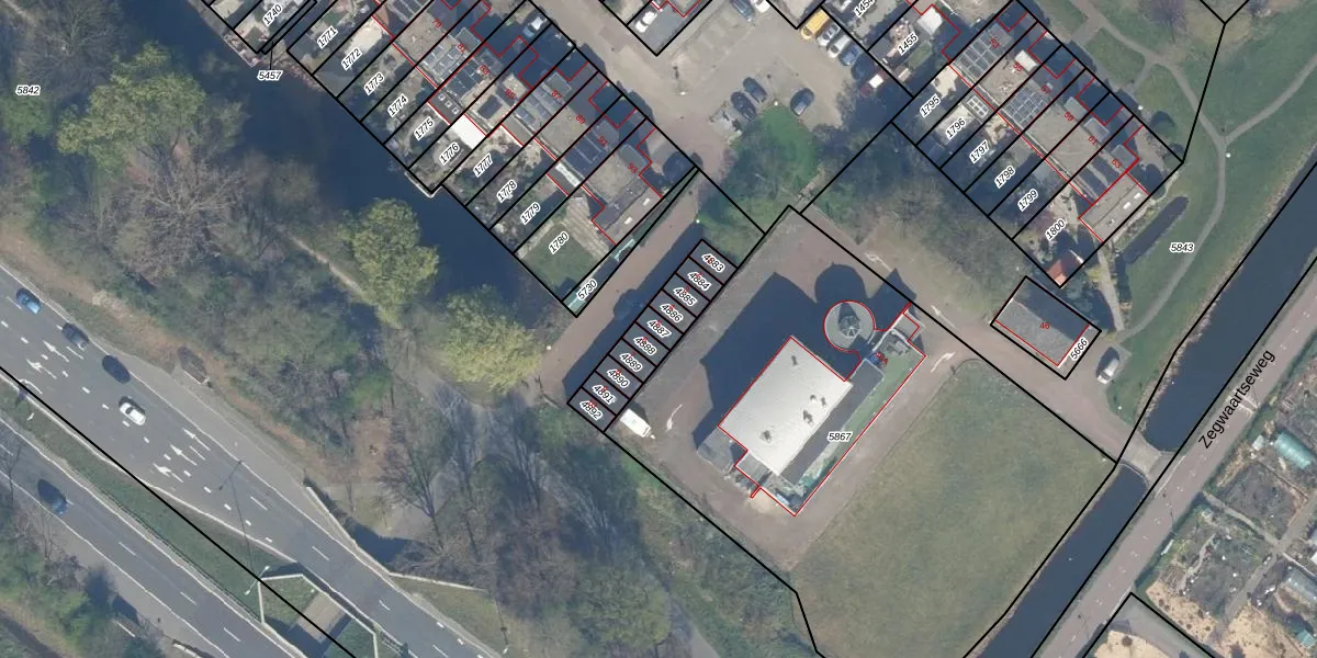 Gebruik de zoekbalk of klik op een perceel voor informatie over de adressen binnen dit perceel.