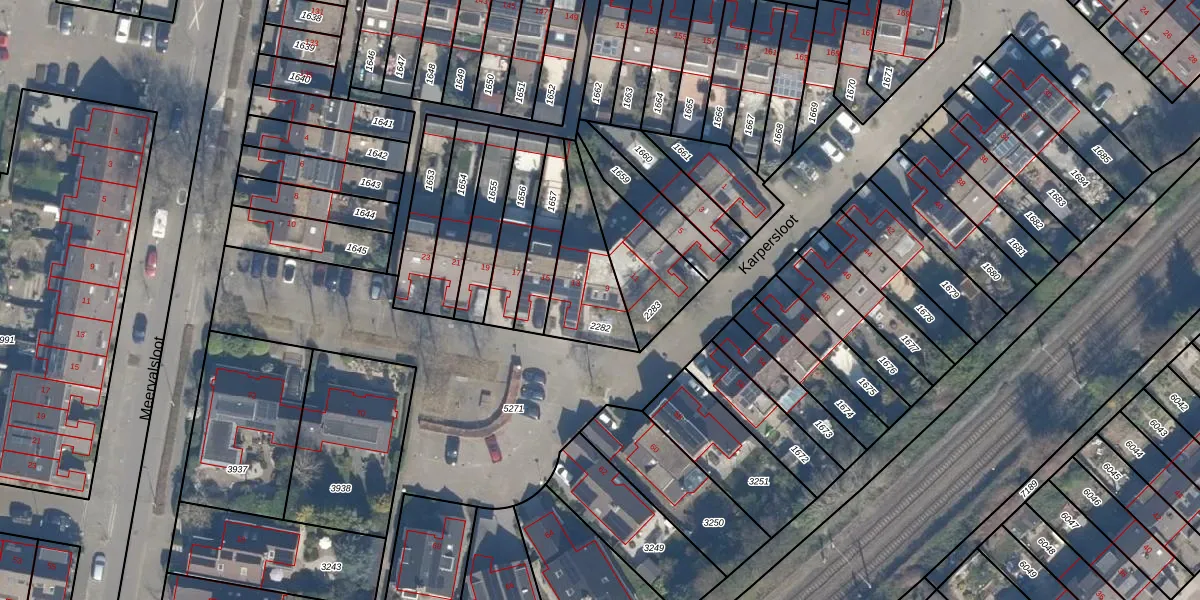 Het perceel waarop Karpersloot 9 staat heeft een oppervlakte van 265 m². Dit is een middelgroot perceel. De perceeloppervlakte wordt geregistreerd door het Kadaster. Gedetailleerde informatie over de maten van dit perceel kunt u vinden in het rapport Kadastrale kaart met maatvoering van Karpersloot 9.